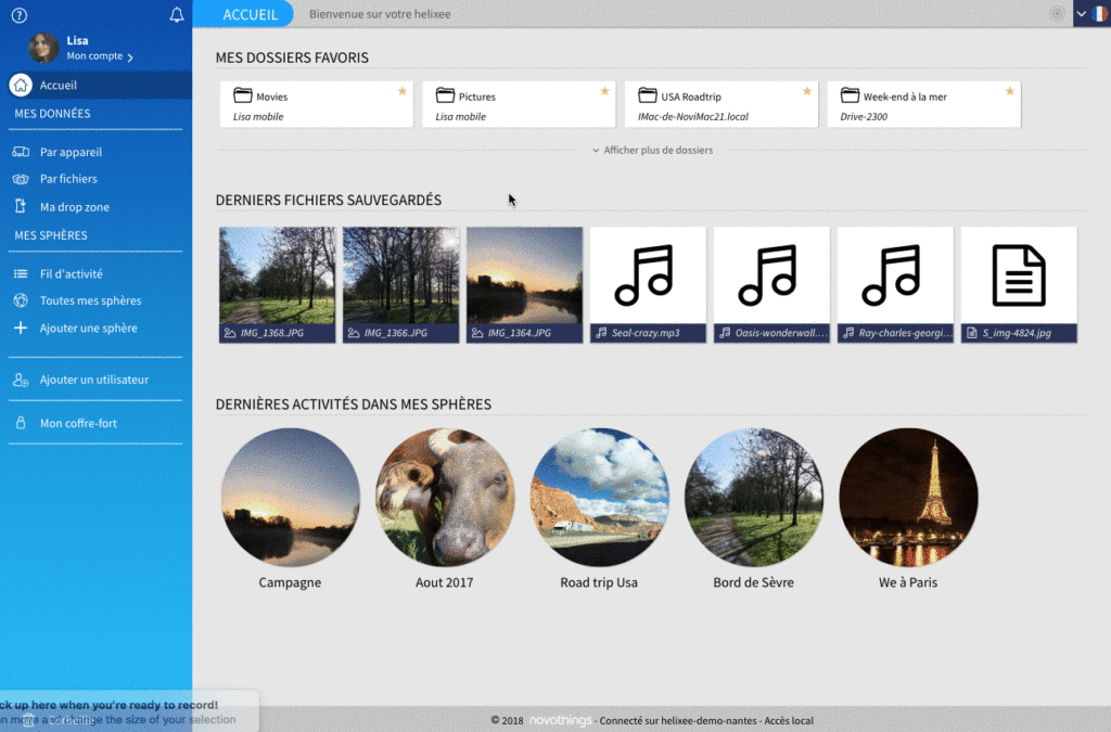 - De consulter l’ensemble de vos fichiers partagés en cliquant sur Toutes vos sphères.
